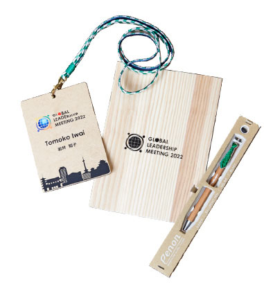 テルモでは、世界の地域・事業の幹部が集まるグローバルリーダーシップミーティング(GLM)を年1回開催しています。今回、2022年のGLMのイベント会場に選んだのは、アメニティに竹製の歯ブラシや紙パックの歯磨き粉を採用するなど、脱プラスチックを積極的に行っているエースホテル京都。GLMでは、日本のリーダーシップとおもてなしの心を示すという弊社社長の考えのもと、毎回日本で開催しています。今回は3年ぶりに集合し、また会場のエースホテルのコンセプトともシンクロさせ、「サステナビリティなおもてなしの提供」を試みました。これまでも開催地の伝統工芸品をノベルティに取り入れてきましたが、今回は京都の組紐をネームカードのストラップに採用し、持ち帰っても使えるようにしました。